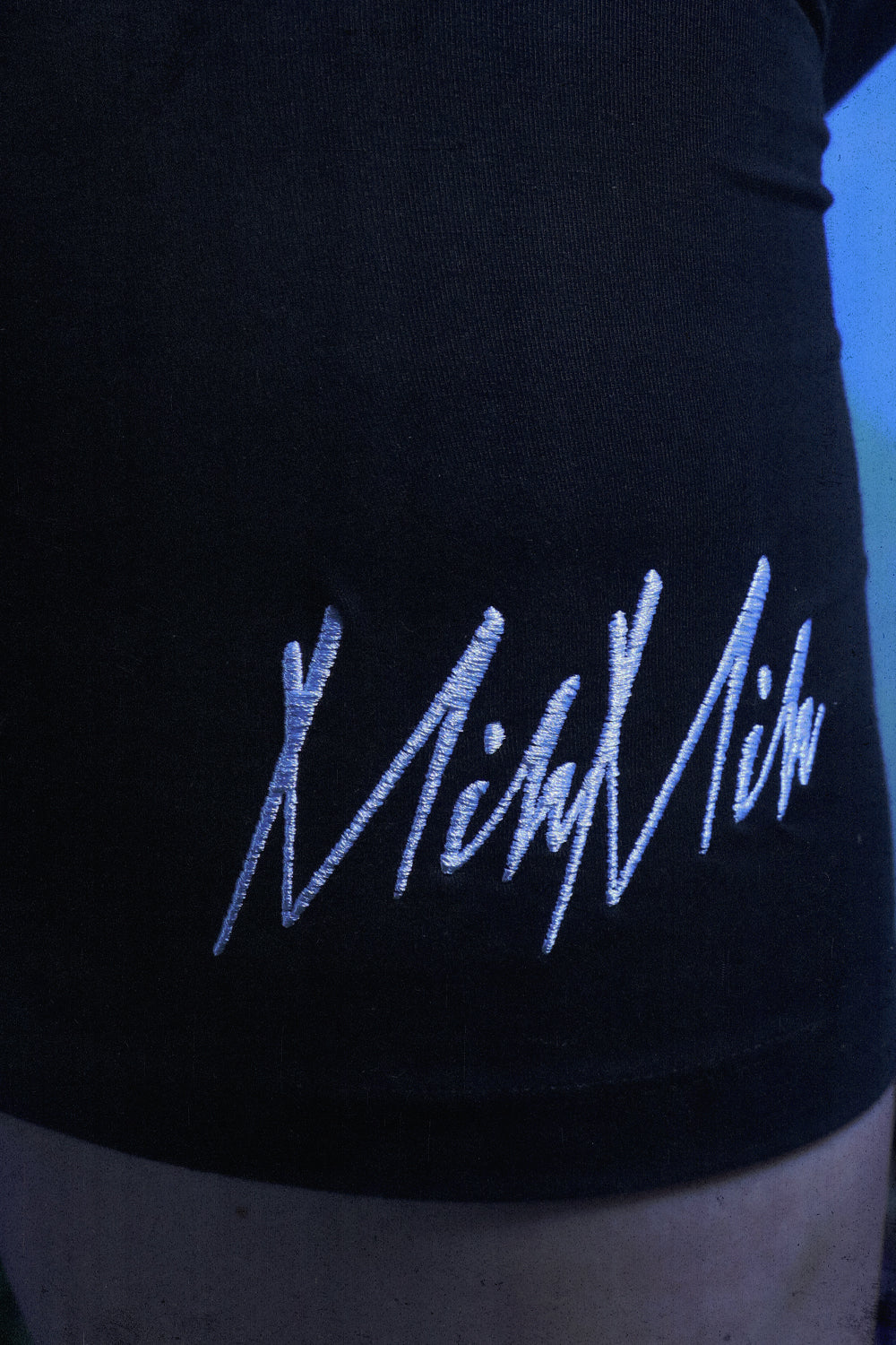 Cotton loungewear biker shorts embroidered with Don't Tell Em and MihMih on side of legs.