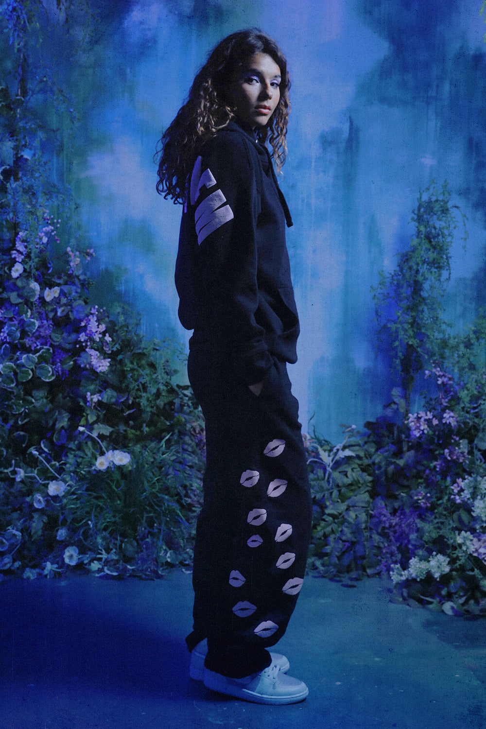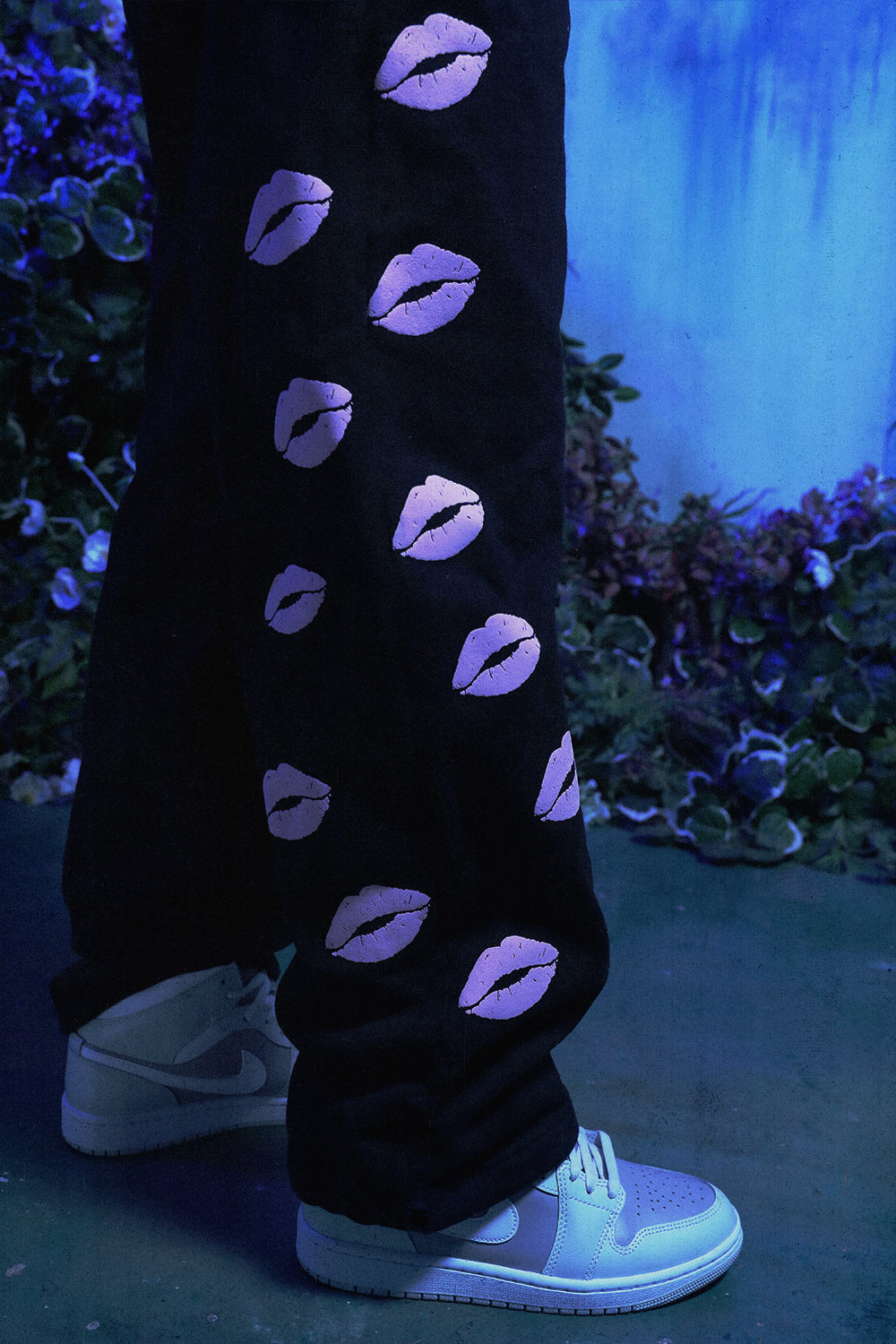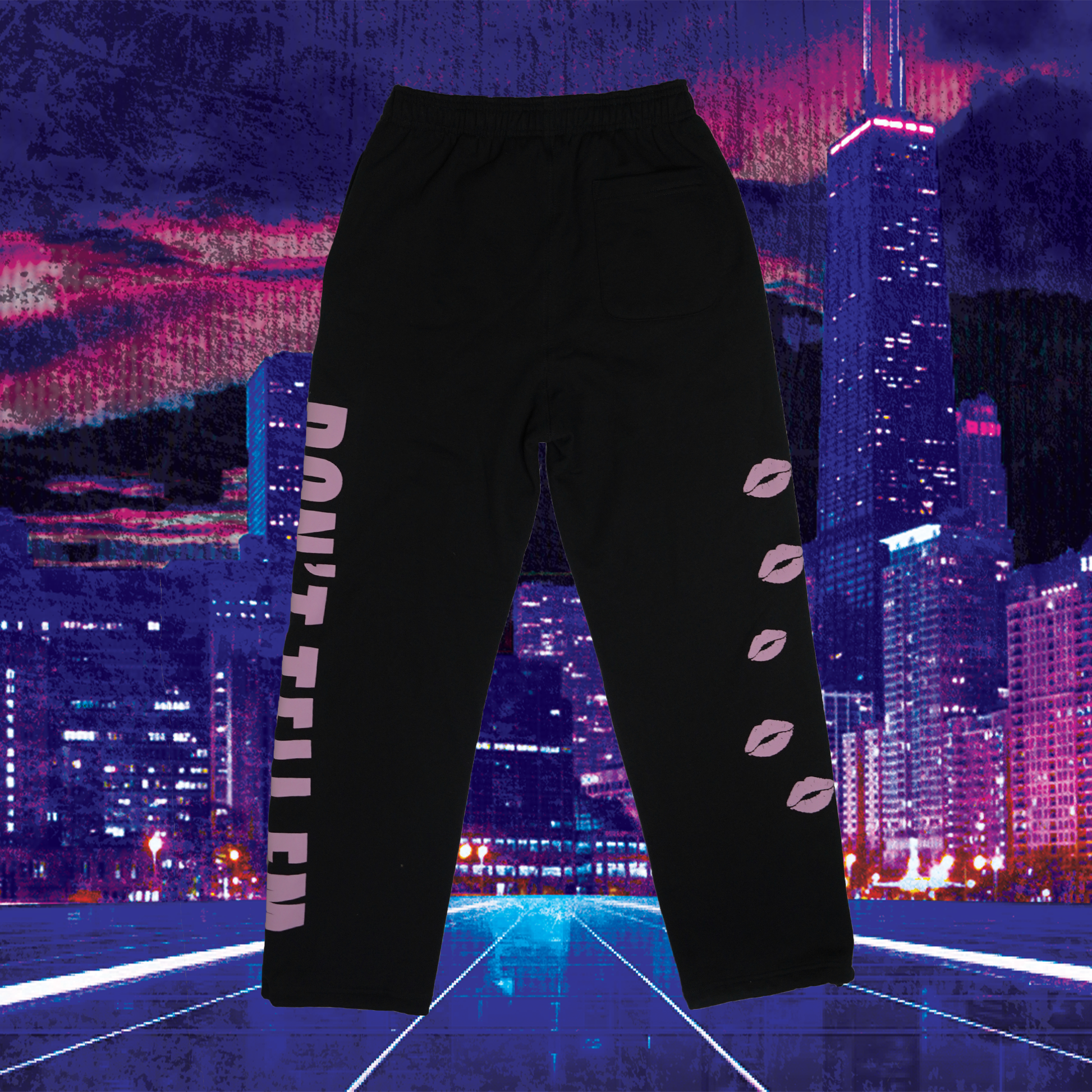 Premium high quality heavy weight open leg sweatpants in black. Don't Tell Em puff print and lips puff print down sides of pant legs